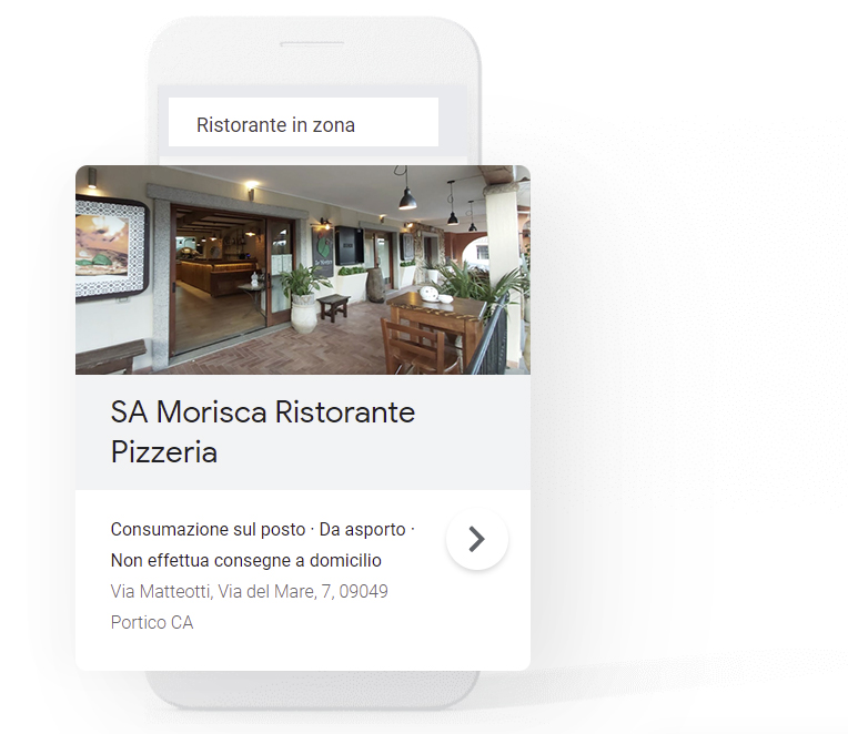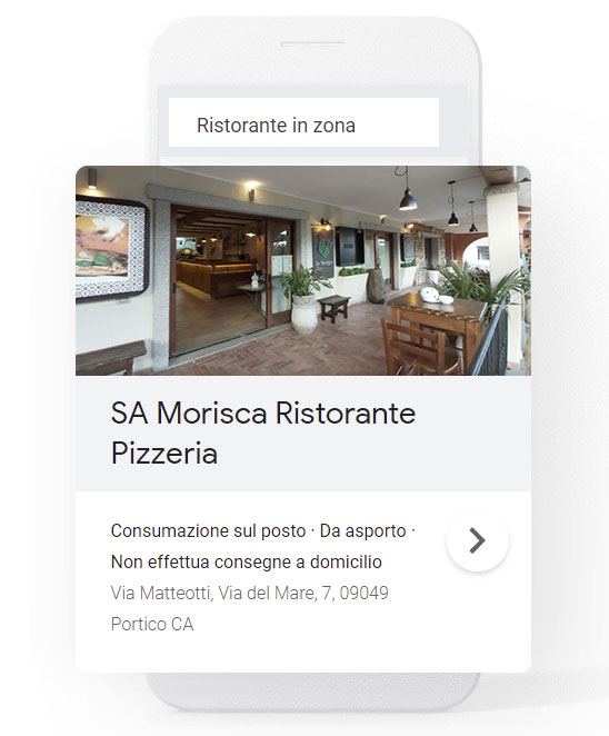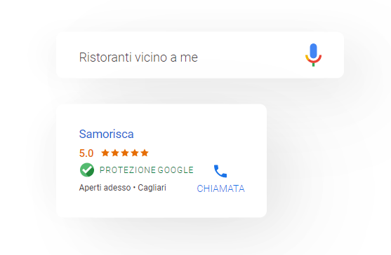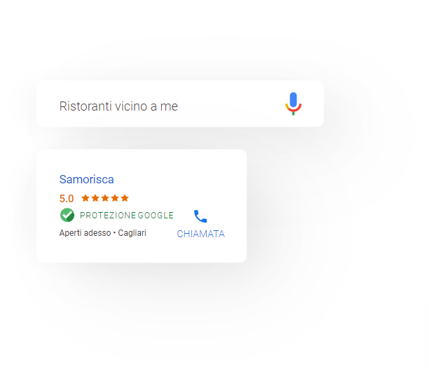 Google associa il tuo annuncio ai termini di ricerca pertinenti alla tua attività e alla tua posizione. Ad esempio quando un utente cercherà su Google “ristorante vicino a me”, la scheda della tua attività apparirà tra i primi risultati di ricerca.